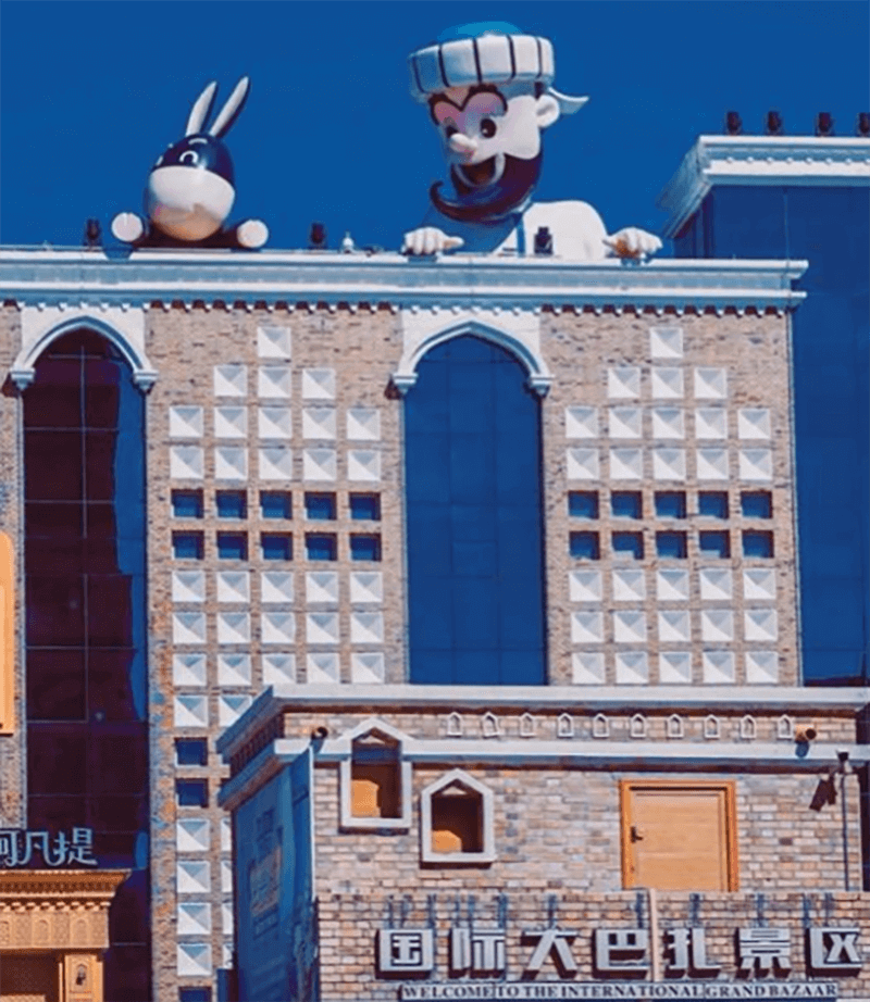 巴扎是維吾爾語,意為集市、農(nóng)貿(mào)市場,它遍布新疆城鄉(xiāng)。新疆國際大巴扎于2004年入選烏魯木齊市“十佳建筑”,具有濃郁的伊斯蘭建筑風(fēng)格,在涵蓋了建筑的功能性和時(shí)代感的基礎(chǔ)上,重現(xiàn)了古絲綢之路的繁華,集中體現(xiàn)了濃郁西域民族特色和地域文化,是“新疆之窗”、“中亞之窗”和“世界之窗”。