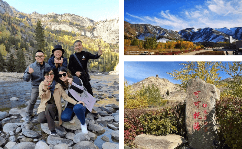 ↑旅游團(tuán)一行在可可托海景區(qū)合影留念