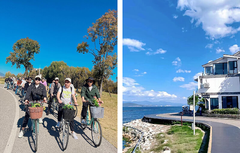 ↑旅游團環(huán)繞洱海騎行