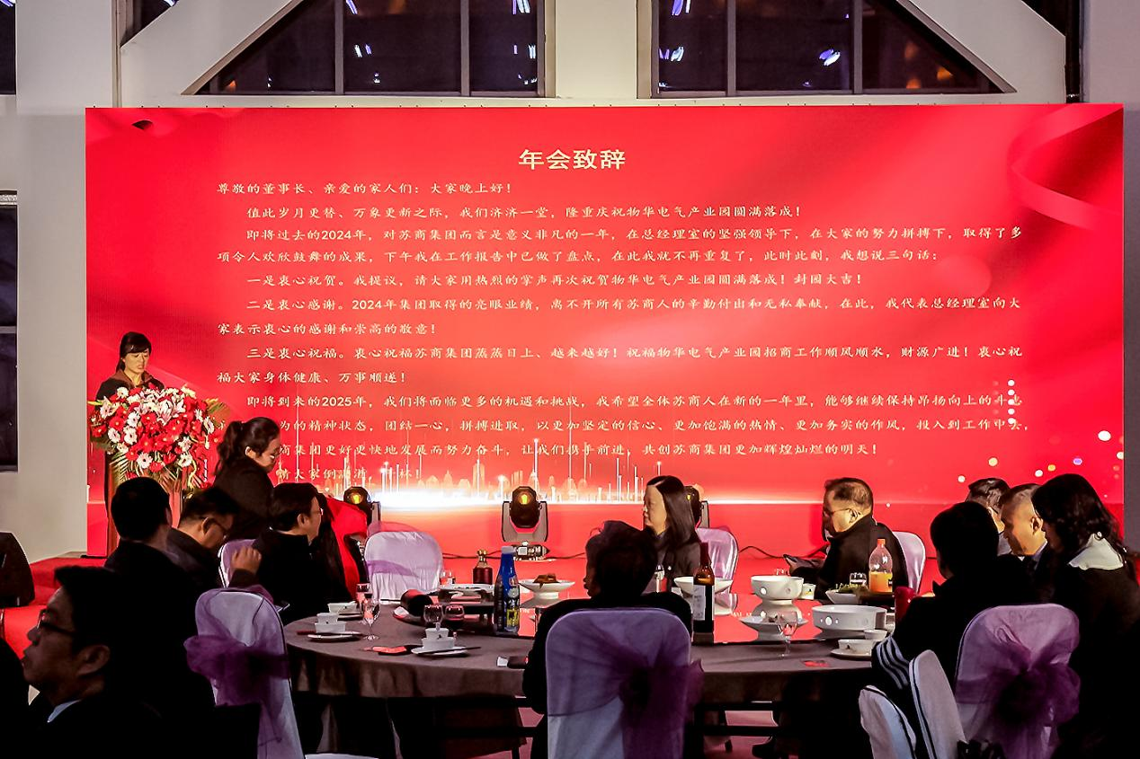 2024年12月31日,南京蘇商集團(tuán)隆重舉行“淵渟澤匯 囊橐充盈”物華電氣產(chǎn)業(yè)園圓滿落成慶?;顒?dòng),集團(tuán)本部全體員工和裝備制造事業(yè)部、商業(yè)管理事業(yè)部高管及員工代表150余人參加活動(dòng)。慶?;顒?dòng)從下午14:00開始,一直延續(xù)到晚上20:30,熱烈、喜慶、溫馨、和諧。