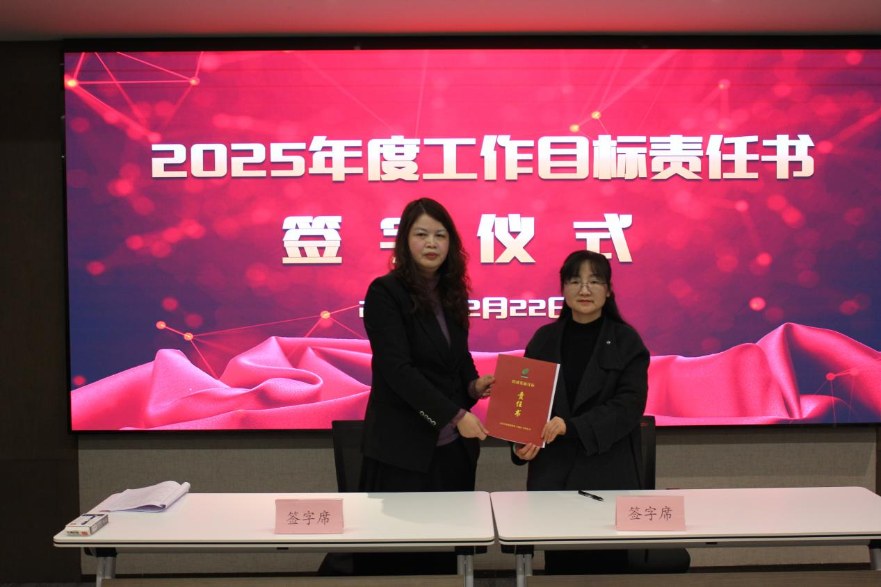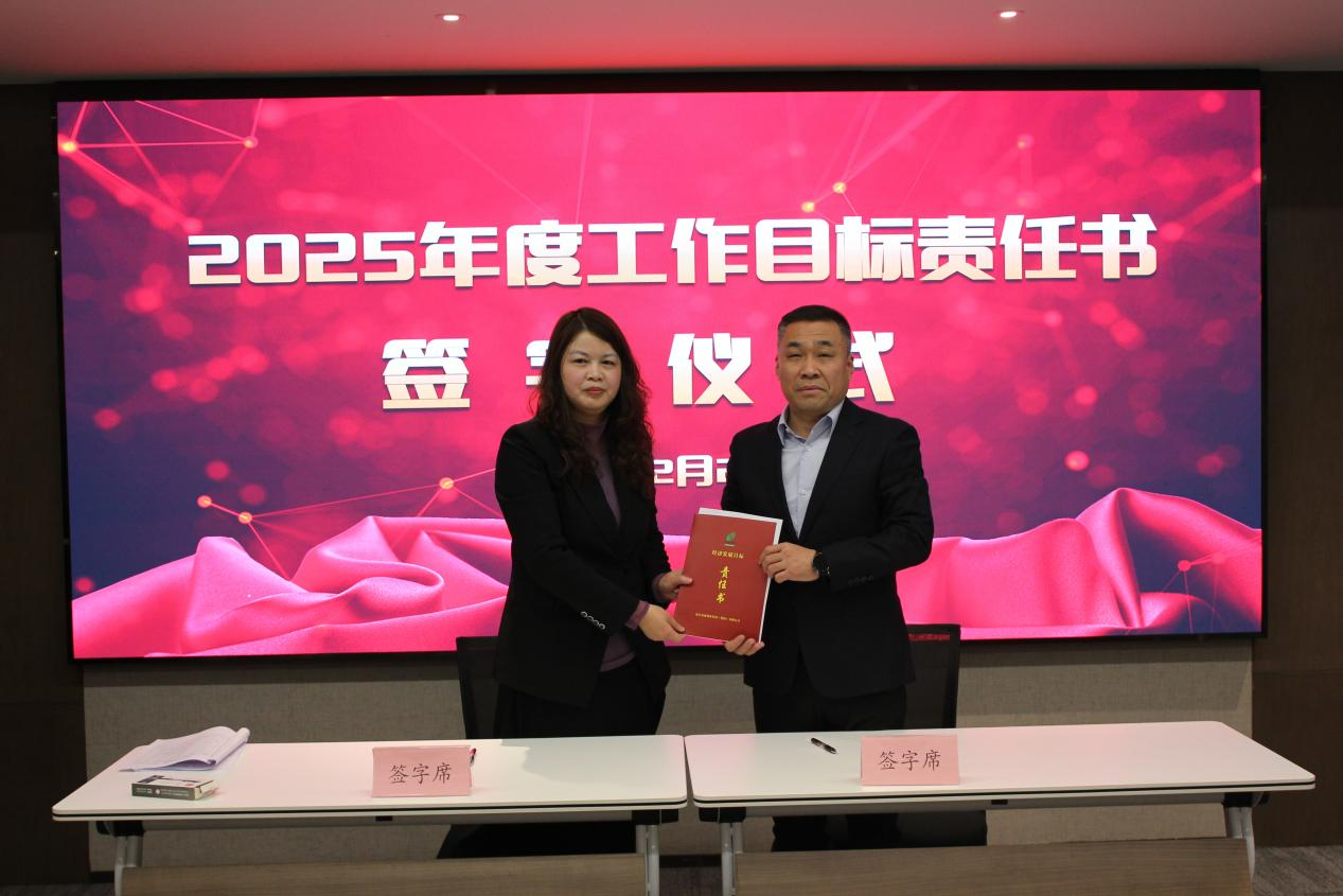 ↑副總經(jīng)理?xiàng)钊A女士同投資運(yùn)營(yíng)事業(yè)部有關(guān)責(zé)任人簽訂工作目標(biāo)責(zé)任書
